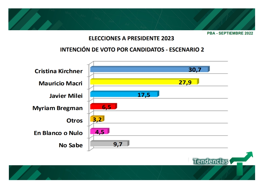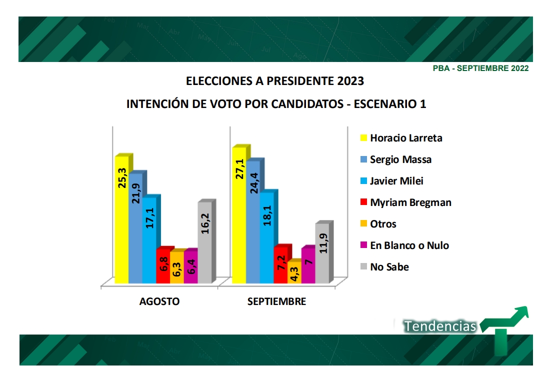 La consultora Tendencias presentó en público el resultado de su última medición de opinión política de cara a los comicios de 2023 durante el mes de septiembre, tanto a nivel nacional como provincial.