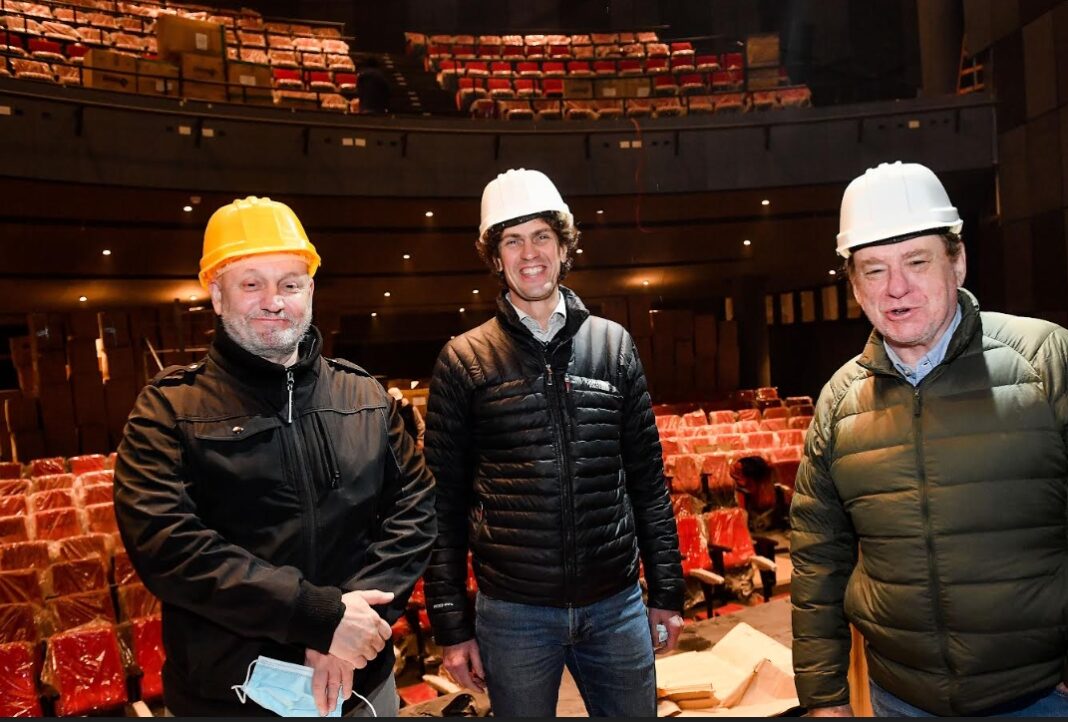 En el marco de los preparativos para la apertura, el presidente del Banco Ciudad Guillermo A. Laje, junto al senador nacional Martín Lousteau y el subgerente general de Empresas del Ciudad, Claudio Saffirio, realizaron una recorrida por el nuevo teatro, acompañados y guiados por Juan José Campanella, quien se encuentra supervisando cada uno de los detalles de la etapa final de obra de la sala. (*)