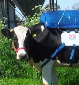 “El sistema digestivo de una vaca grande de 600 kilos, tiene un preestómago que tiene una capacidad de unos 150 litros. Allí se fermenta la comida, el pasto sobre todo, y lo que nosotros hicimos fue tomar al bovino como si fue un biodigestor. Lo que hacemos es hacerle un pequeño agujerito, un piercing en el estómago para poder colectar el gas, y a partir de allí lo purificamos, descartamos el dióxido de carbono, y nos quedamos con un metano concentrado alto, donde arrancamos al 25% y lo llevamos al 95%. Eso nos permite tener un gas de la misma calidad de la red natural, y nos faltaba comprimirlo y tomamos contacto con gente que está en el tema de la compresión, y una vez que lo teníamos comprimido lo usamos con distintos usos, y uno fue hacer andar un auto a GNC”, explicó el médico veterinario Guillermo Guerra, coordinador del grupo de Fisiología Animal del INTA Castelar, sobre este nuevo desarrollo.