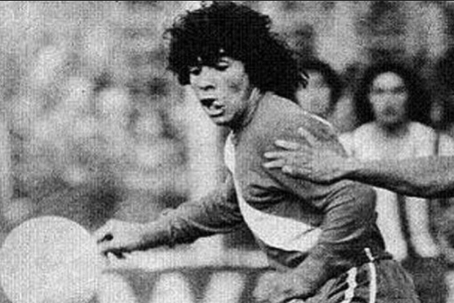 “El miércoles 20 de octubre de 1976, y con la número ’16’ en la espalda, en el entretiempo, Maradona ingresó por Rubén Giacobetti para dar intentar dar vuelta el marcador contra Talleres de Córdoba en La Paternal, partido que culminaría con la victoria por 1 a 0 del equipo cordobés. En una de sus primeras intervenciones, Diego le tiró un túnel a Juan Domingo Cabrera, jugador de la T.