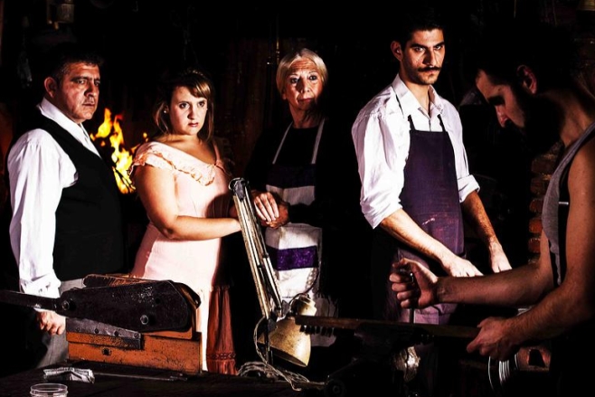 “Llegamos medio de casualidad, porque fuimos hasta Juan (por Pallarols) para entrenar el arte de la orfebrería, para que puedan practicar los actores y terminamos maravillados con el lugar que no conocíamos, que parece estancado en 1900, parece de otro mundo”, dijo Leopoldo Minotti, codirector junto a Matías Leites de la obra El Vértigo, escrita por Armando Discépolo que se presenta este viernes en el taller museo del orfebre Juan Carlos Pallarols.